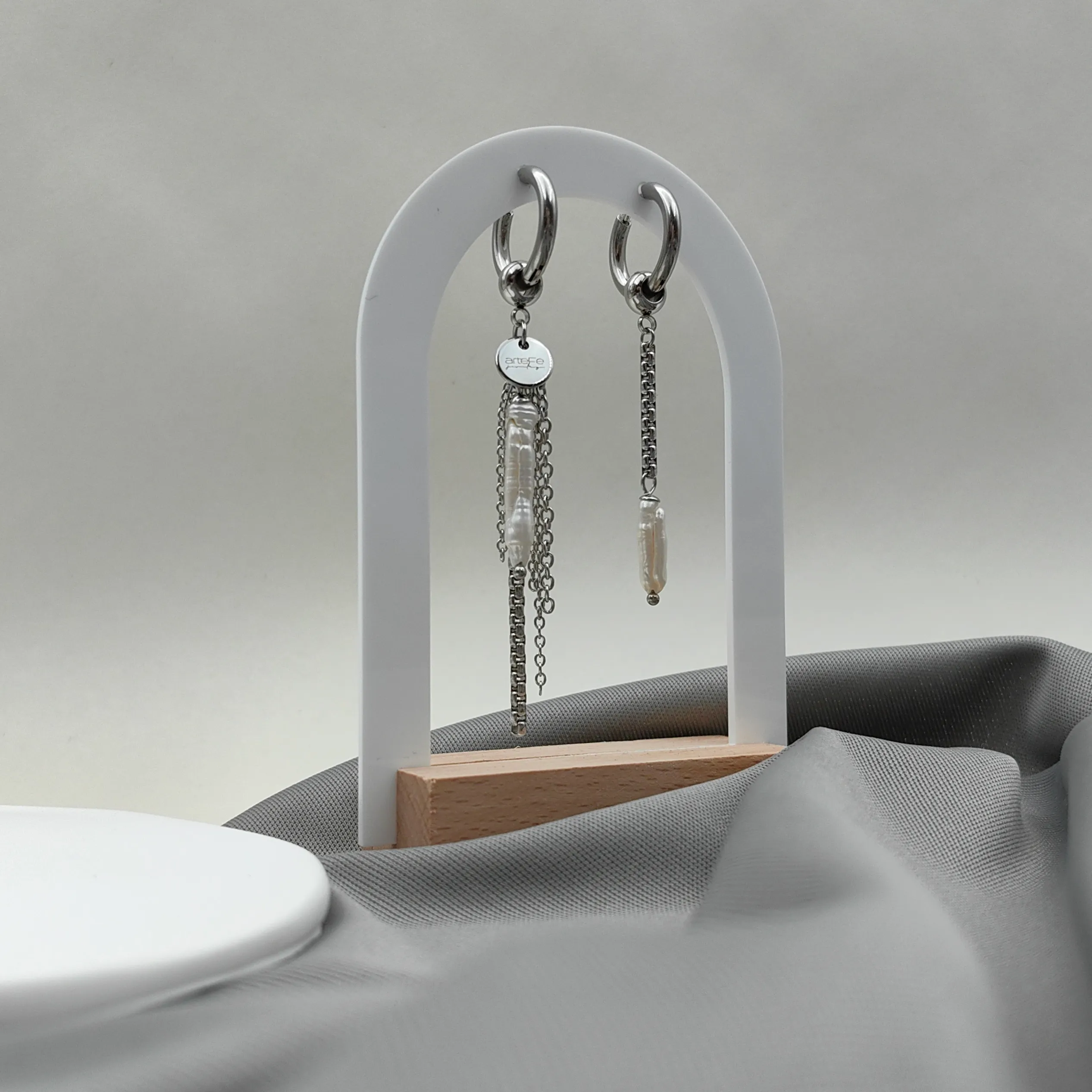 Ассиметричные серьги с жемчугом. Съемные декорные элементы предоставляют возможность экспериментировать со своим образом. Носи с двумя декорными элементами или оставь только базовые кольца. Или выбирай вариант моносерьги для себя.